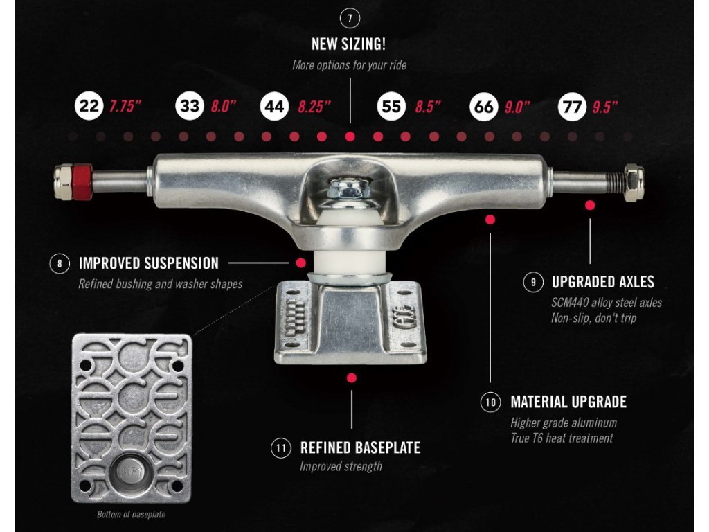 Ace je v poslední době hodně viditelná značka ze San Francisca, která se zaměřuje na výrobu trucků. V jejím týmu jsou například Kevin Rodrigues, Ronnie Sandoval, Raven Tershy, Alex Olson, Jacopo Carozzi, Didrik Galasso a spousta dalších. Vyšší řada trucků AF-1 je vyrobena z mnohem odolnějšího materiálu než řada Classic, což zvyšuje jeho životnost. Trucky se také chlubí novým patentem matek, které udržujou závit "dýl ve formě". Ke každýmu trucku navíc dostanete speciální červenou matku, která se po zasazení do jakýhokoli skate toolu změní v závitník. POZOR u nové řady AF-1 došlo k posunu číslování, které je odlišné od řady Classic.